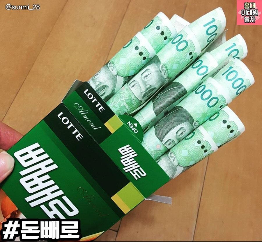 퇴근길에 빼빼로 하나사서 내용물만 바꿔 주자.... 그날은 뜻밖의 이벤트처럼 좋아할 거다.
