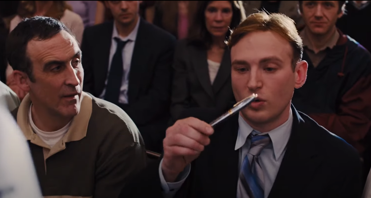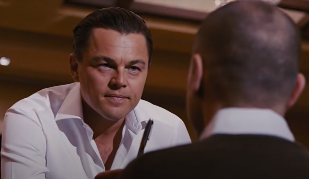 영화 <더 울프 오브 월 스트리트>에서 존 번탈이 디카프리오에게 펜을 파는 장면이다.