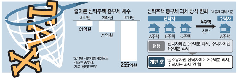 하지만 이 같은 '절세 꼼수'는 올해가 마지막이 될 가능성이 높다. KB국민은행 전문연구위원은 ""2020년 세법개정안"에 따라 내년부터는 수탁회사가 아닌 위탁자(원 소유자)가 종부세를 납부하게 될 것으로 보인다"고 말했다. 이렇게 되면 위탁자는 본인 소유 아파트와 신탁을 맡긴 주택을 합산해 종부세를 내야 하기 때문에 신탁제도를 통한 절세효과는 사라진다.