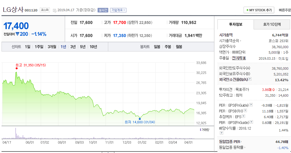 참고로 LG상사는 작년 이익 22% 감소로 1월에 최저를 기록하였다가 지금 올라오는 추세임.
