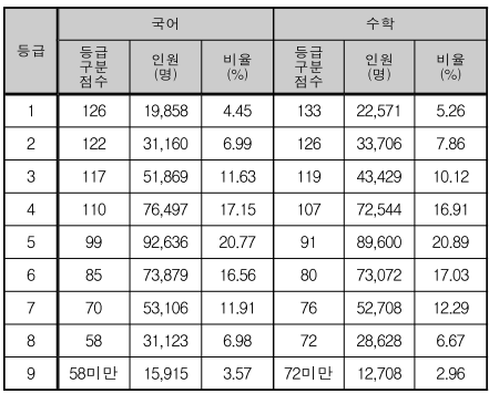 1교시 국어, 2교시 수학, 3교시 영어, 4교시 한국사 합본