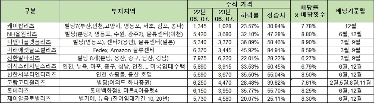 2023.05.23 - [취미가 돈벌기] - 지금 투자하면 배당률이 8%대인 리츠(REITs) 분석