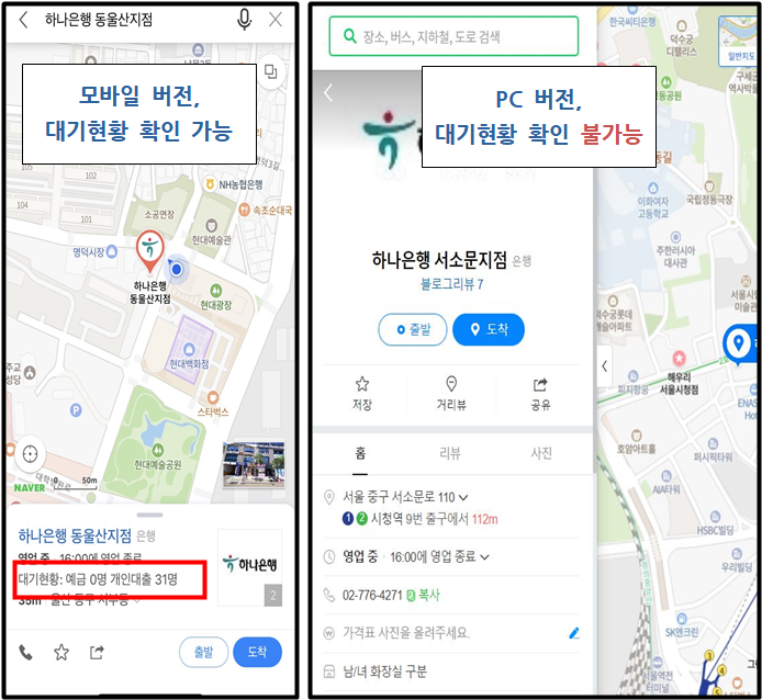 최근 휴대폰으로 네이버 지도에서 은행지점을 확인해보니, 놀라운 게 있었습니다.