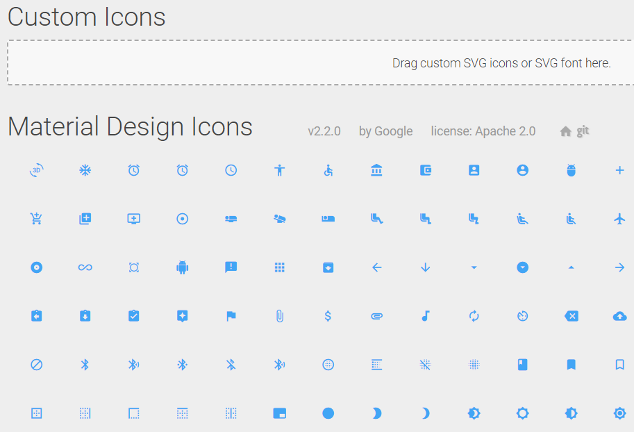 추가로, 아이콘을 직접 제작하기 보다는 기본적으로 제공하는 이미지를 활용하는 것이 좋습니다. 아래의 주소에 들어가시면, 다양한 이미지를 한번에 볼 수 있으니 참고하시기 바랍니다.
