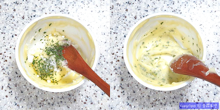 - 버터2T에 설탕 취향것 파슬리가루를 넣고 섞어주셔요. 혹시 버터가 굳어 있다면, 전자렌지에 10초만 돌려 주셔요