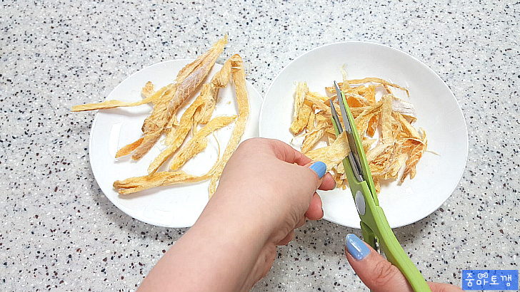 - 황태채를 먹기 좋은 사이즈로 가위로 잘라줍니다.