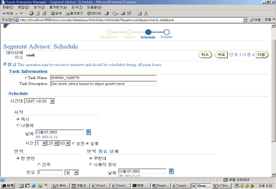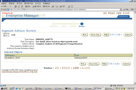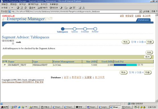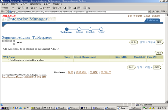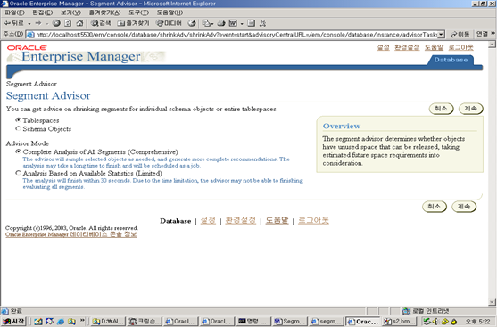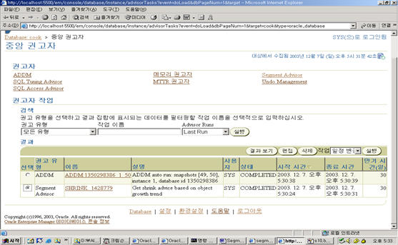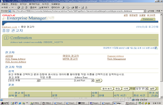 6. 이제 EM의 Advisor Central 링크를 이용하여 Segment Advisor에 접속하자.