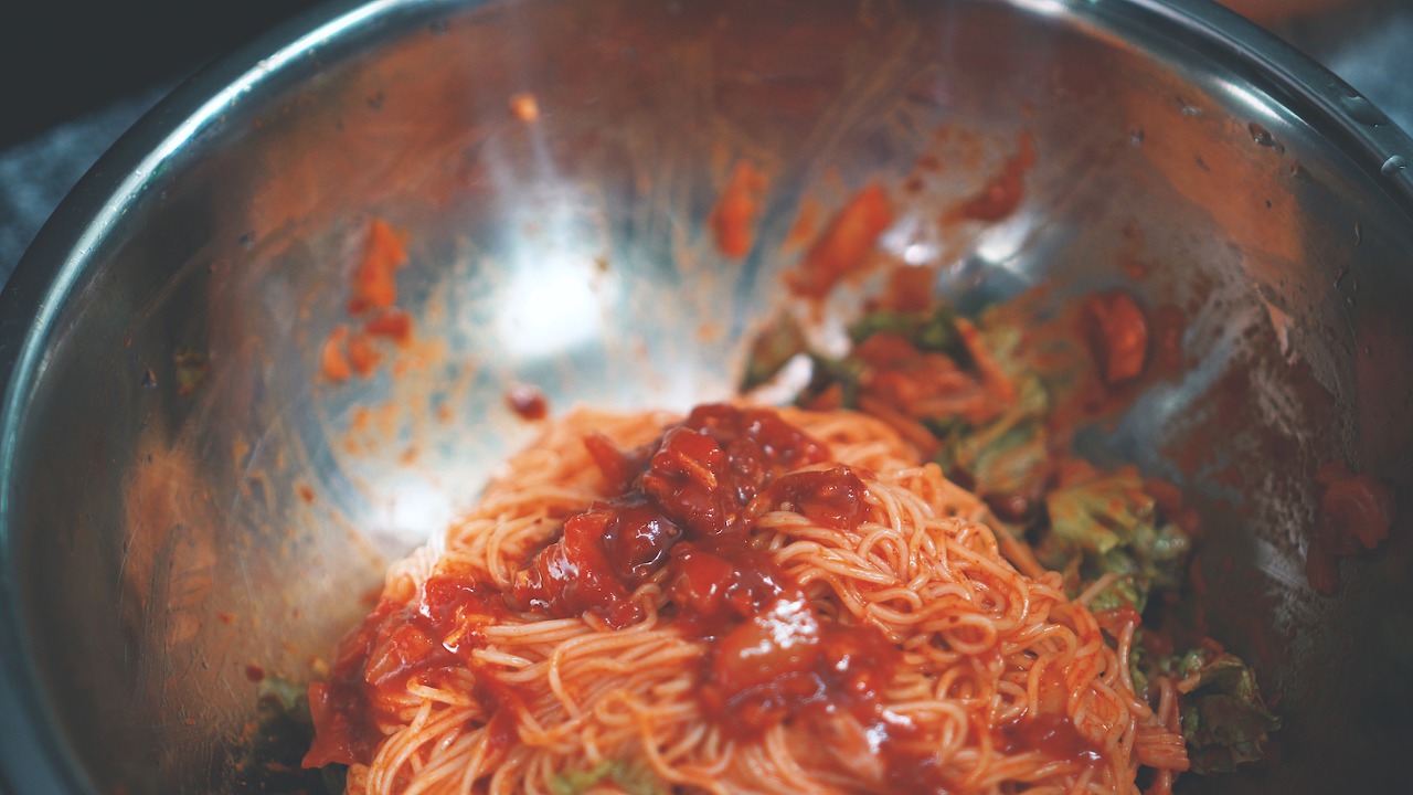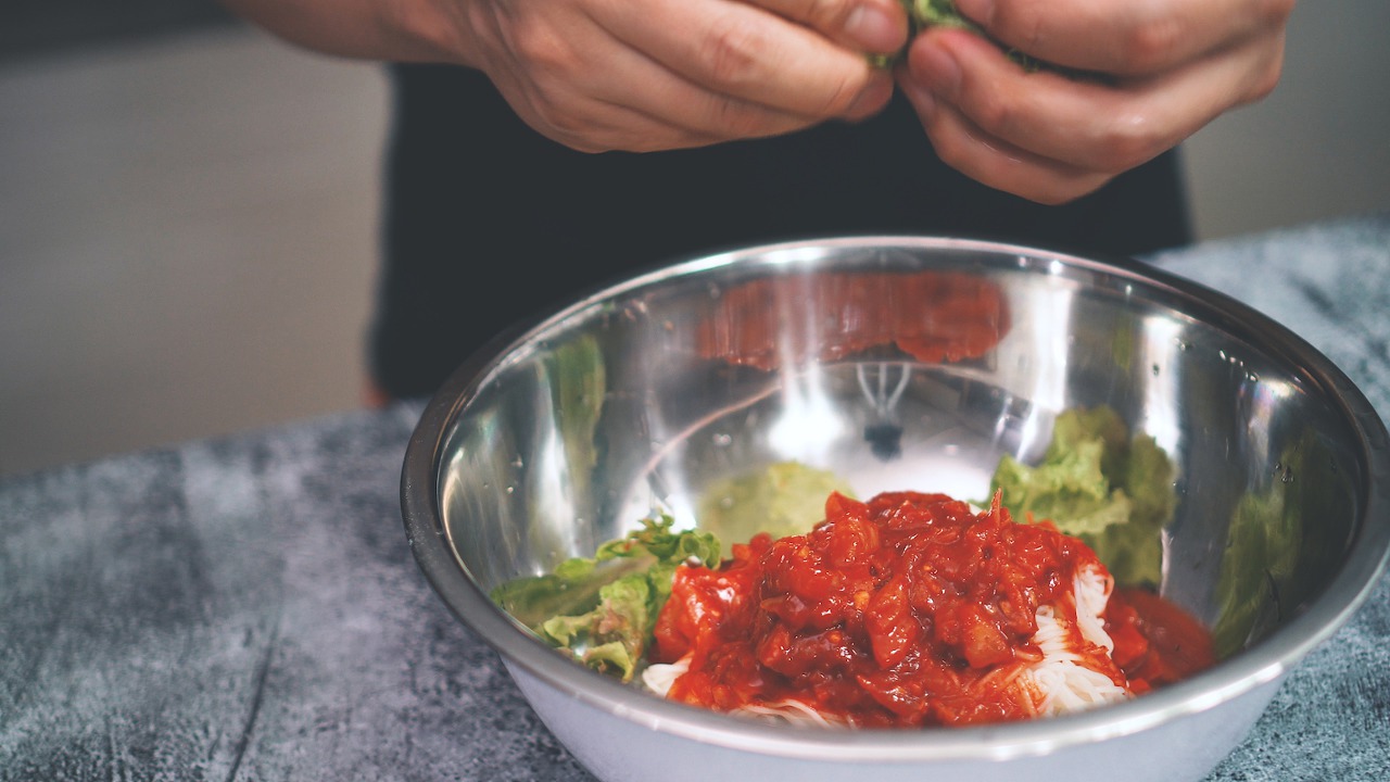 비비게 좋게 큰 볼에 소면과 양념을 더해주세요~