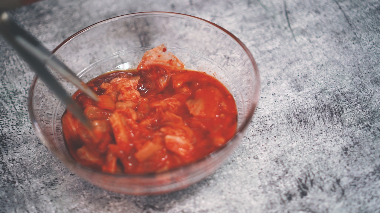 양념장에 신김치 반컵에서 한컵사이를 더해주시고, 잘섞어 숙성이 되게 놔두세요~